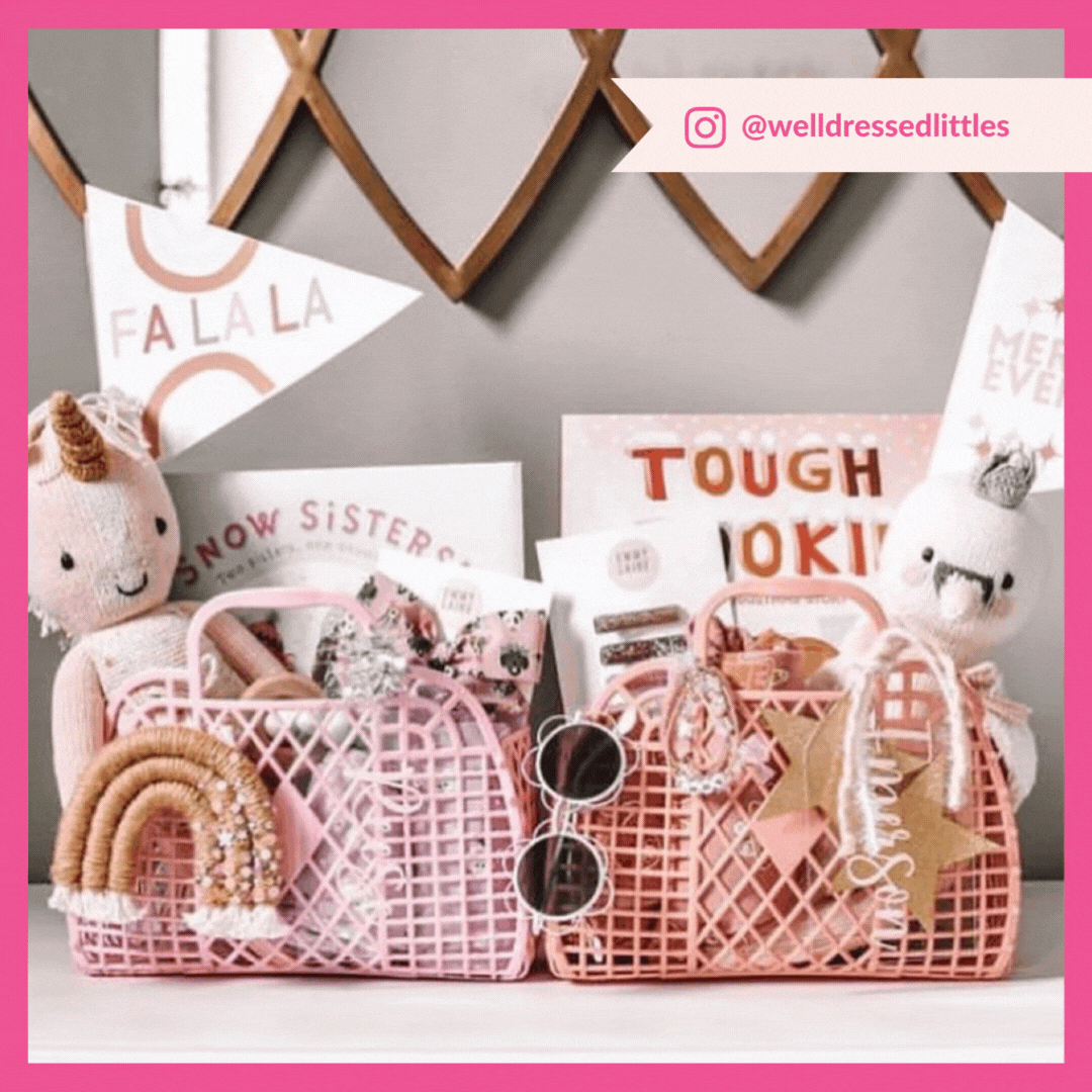 Of course, we suggest starting with a Sun Jellies bag! Our bags make the cutest Christmas Eve baskets, adding a touch of #kitschmas to your Christmas. Use our smaller bags if you want to prepare individual baskets, or a larger bag if you want to bundle everything in together to create a family-sized basket to be shared.